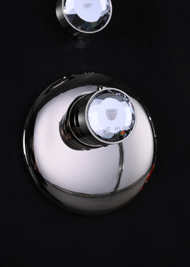「月亮女神」系列,诠释极简主义的高级美学。暗装入墙式设计,让墙面保持干净利落,仅留顶喷、手持与控制面板的简约组合,适配多种家居风格,尽显低调奢华。控制面板暗藏巧思,A面圆月设计温润雅致,B面810格精雕工艺质感突出,将极简线条与精致细节融合,于方寸之间展现东方美学的温润与西方设计的简约。