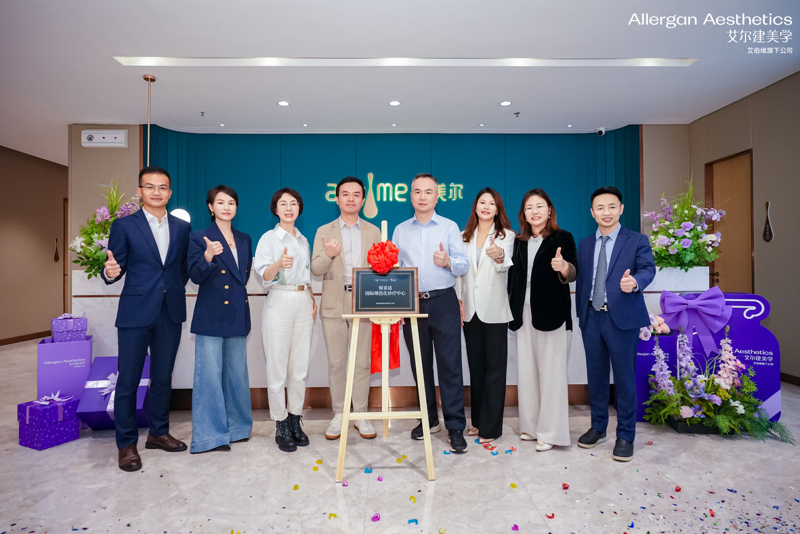 保妥适国际规范化诊疗中心揭牌仪式举行,由爱美尔健康美容集团执行总裁陈洲鹏先生、爱美尔注射美容技术总院长刘真俊院长、爱美尔医疗美容仓山院徐凌艳院长、爱美尔CEO罗平先生、姜海燕院长、艾尔建美学区域总监王艳女士、艾尔建学苑·东中国负责人曹飞霞女士、艾尔建美学高级地区经理郭平先生共同为诊疗中心揭牌。这标志着爱美尔成为保妥适国际规范化诊疗合作机构。